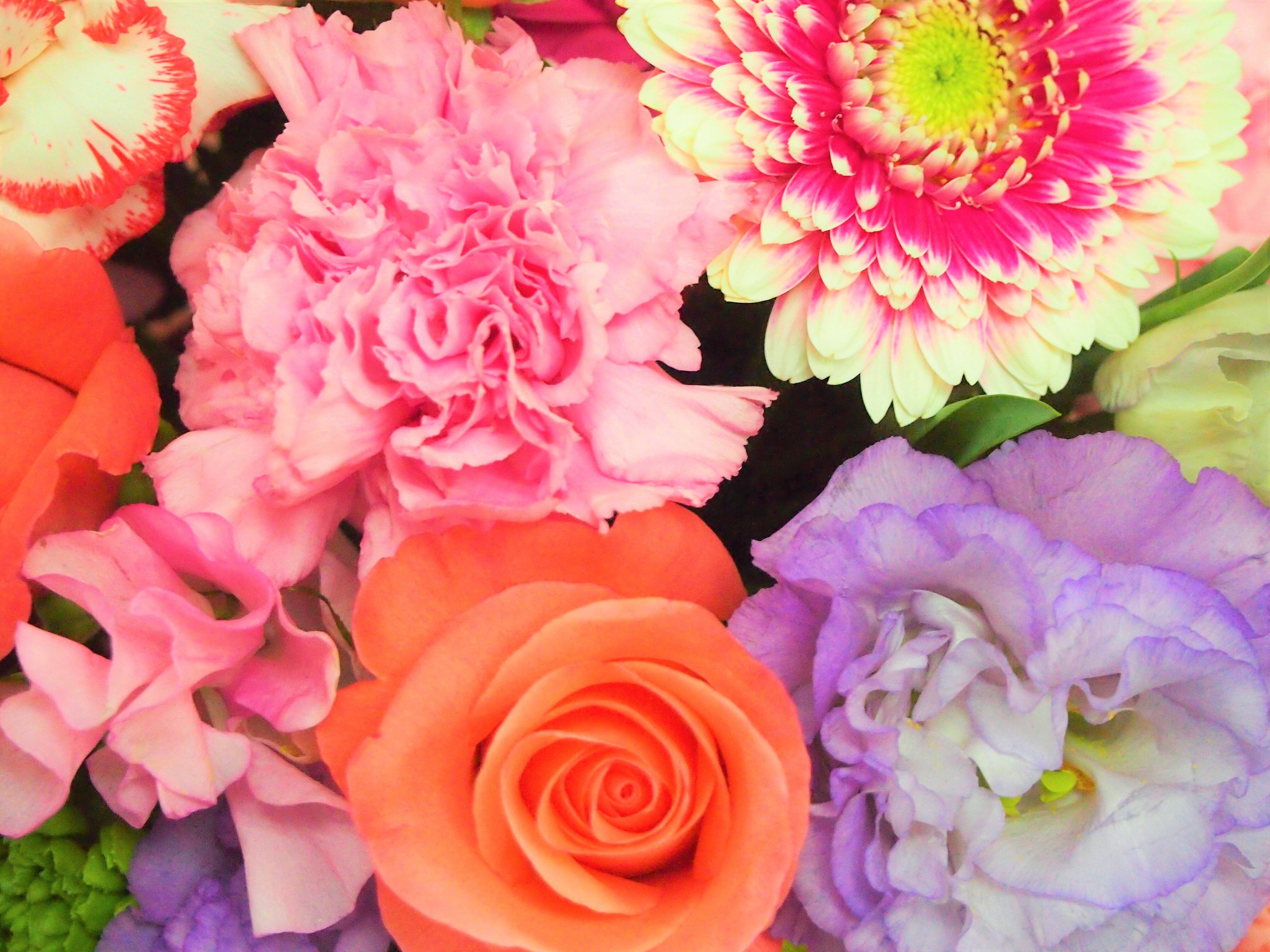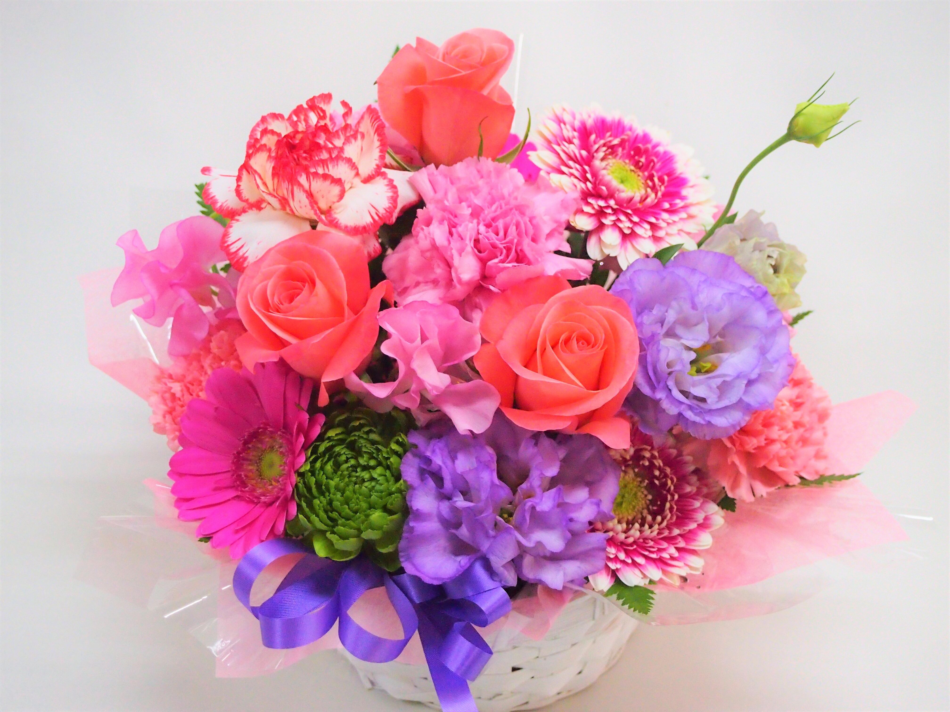 バラ、トルコキキョウ、ガーベラと季節の小花やグリーンでまとめました♪